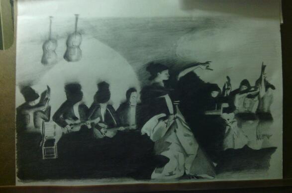 “El Jaleo” after John Singer Sargent; graphite on 18 x 12, Strathmore, 400 series drawing paper, 2013.