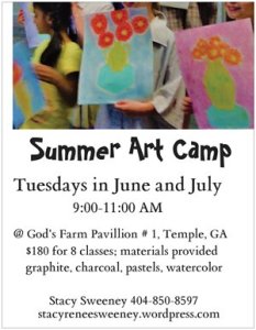 Summer Art Camp 2017 May 26, 2017 Written by stacyreneesweeney Share this: Click to share on X (Opens in new window) X Click to share on Facebook (Opens in new window) Facebook Like Loading...