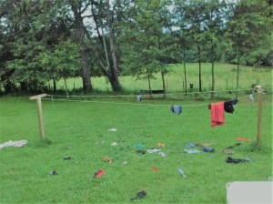 Rain came so heavy, every day this week,that the miserable ducks were swimming in the muddy road like a creek. As I drove Keller up to the hoop house at six each morning to let the chickens outside, I watched them race out of the tunnel structure like there was a fire inside. And two of the poor baby chicks were picked off, maybe by a hound. The young campers’ and farmers’ wet swim clothes and towels, would vacillate between almost dry to drenched and dragging our clothes line to the ground. So one morning, Wednesday it was, I looked out the window and laughed with the wind from the kitchen, then I thought for a moment – of my true condition.