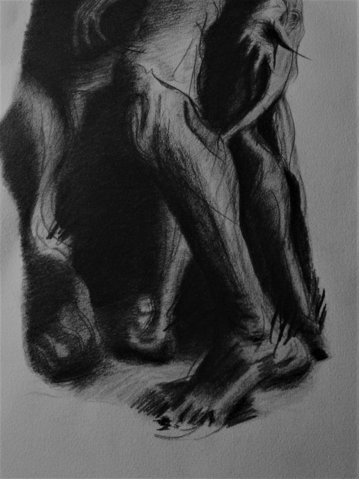 “Burghers of Calais,” with black litho crayon on 11×14 Rives by Arches lightweight creme paper, after Auguste Rodin.