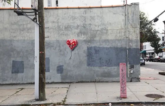 Love Hurts, also known as Wounded Heart Balloon, has appeared outside of the print release during Banksy’s New York residency. The mural was seen in Brooklyn.