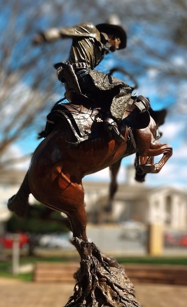 There’s a battle going on between a powerful horse and an able cowboy. He faces the horse head on. The wild horse needs to be tied up and broken in order to be useful. The cowboy moves with the tiring horse and he overcomes. Then the horse might be trotting, allowing children with emotional problems to touch him, healing the brokeness inside.