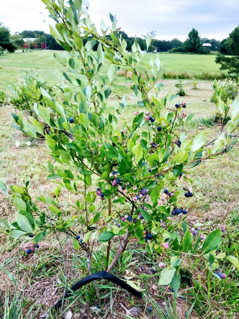 Pastel colored clusters hung from many name worthy varieties of blueberry bushes aligned along the draw of the pasture. I was determined to pick all the ripe blueberries on this overcast, blustery day.