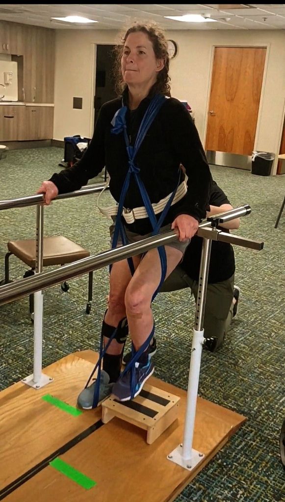 Evaluations were a big gash to my ego. I’m just not as good as I thought I was. And so to have the physical therapist, Caitlyn, stabalize my feet with her hands and guide my gait with precision was exactly what I needed. I’ve been walkiń on tip-toes since my first steps.